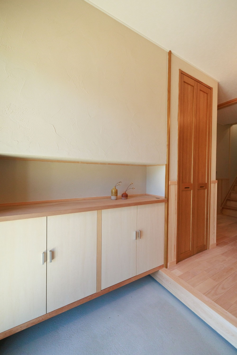 この家は、今の暮らしを大切にしながら、やがて次の世代へと受け継がれ、家族が集い、思い出を重ねていく場所でもあります。家族にとっての「ふるさと」になるよう、木と自然素材をふんだんに使い、季節に左右されにくい心地よさを追求しました。