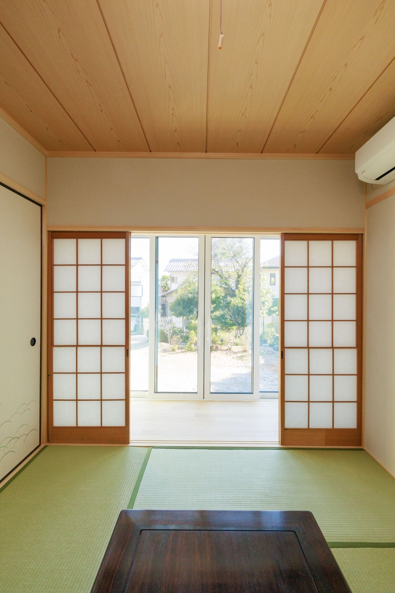 普段は、畑仕事を楽しんだり、縁側で本を読んだり。それぞれの時間をゆったり過ごせる一方で、家族が集まる日には、二間続きの和室と吹き抜けでつながる空間が活躍します。